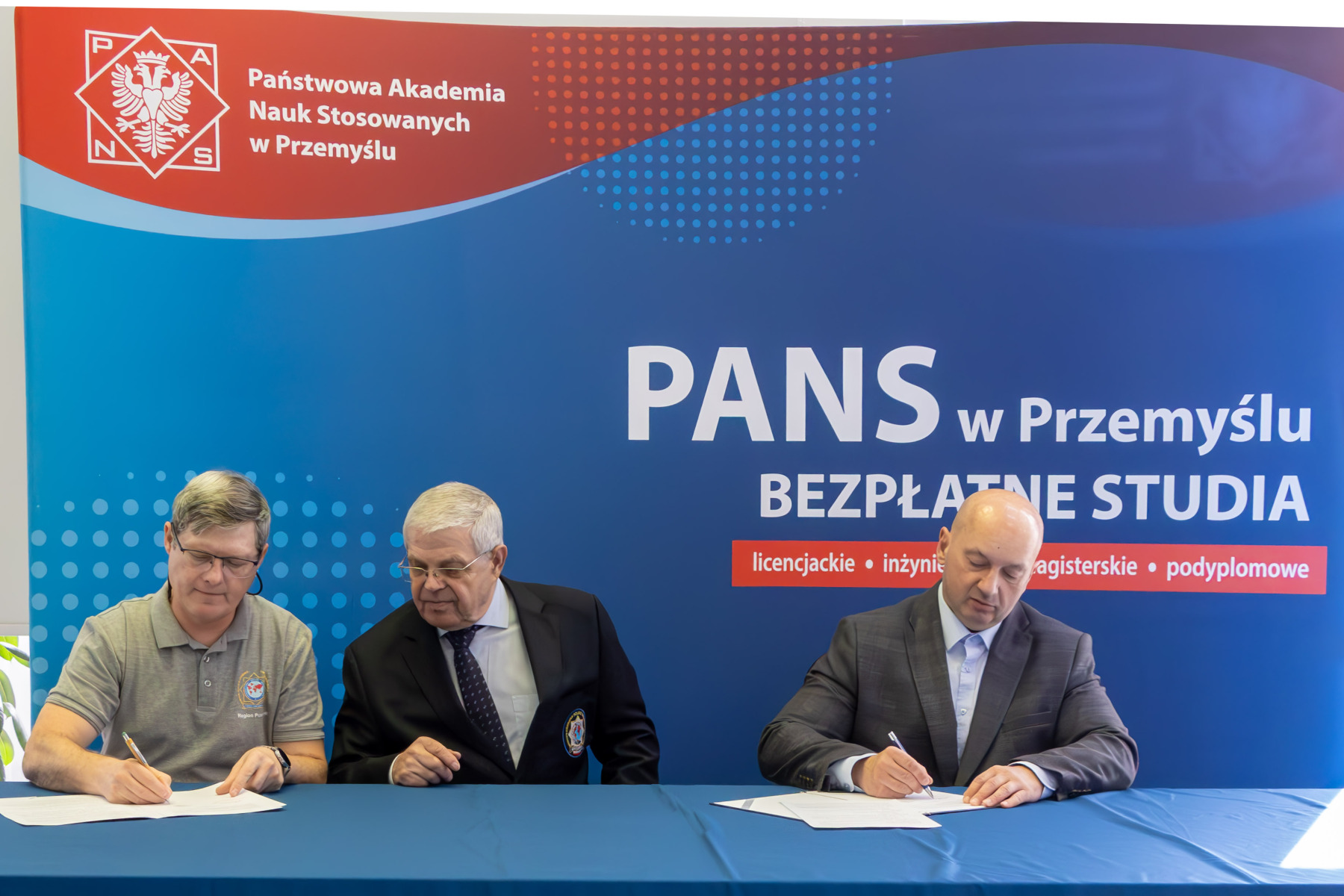 Przemyski Region IPA w ramach działalności statutowej od kilku lat współpracuje z Państwową Akademią Nauk Stosowanych w Przemyślu. Oficjalne przypieczętowanie współpracy odbyło się 27 października br. w uczelnianych murach, przy udziale: JM Rektora – dr. hab. Marka Delonga, prof. PANS, Prorektora ds. studenckich dr. Andrzeja Kaweckiego, prof. PANS, Kanclerza PANS – mgr. Dominika Tracza, Dziekana Wydziału Nauk Społecznych, Humanistycznych i Ochrony Zdrowia PANS – dr. Pawła Łabuza, Dyrektora Instytutu Nauk Społecznych i Humanistycznych – dr. Tomasza Olejarza, prof. PANS oraz Jana Fabera – Przewodniczącego Przemyskiego Regionu Międzynarodowego Stowarzyszenia Policji IPA i Wojciecha Skorży – Sekretarza Prezydium Przemyskiego Regionu IPA.